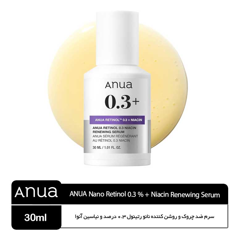 ❌سرم ضد چروک و روشن کننده نانو رتینول 0.3 درصد و نیاسین آنوا ANUA Nano Retinol 0.3% + Niacin Renewing Serum